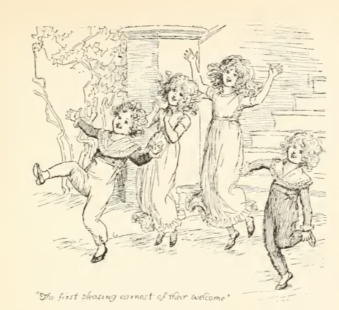 In this image the Gardiner children greet their parents and Elizabeth when they returned home from Derbyshire. Most of the family at Longbourn were distraught because of Lydia having run away with Mr. Wickham, and their greeting of the travelers was much more somber. The children, however, were very happy to see their parents. This scene occurs in chapter 47. The characters are shown in the traditional regency style. The Gardiner’s daughters wear dresses with empire waists, and the Gardiner’s sons wear short coats and breeches. The regency period dated to the early nineteenth century (1811-1820) when George, Prince of Wales, later George IV (r. 1820-1830), reigned as regent for his mentally ill father, King George III (r. 1760-1820). The regency period is associated with the rise of neoclassicism in art and fashion.