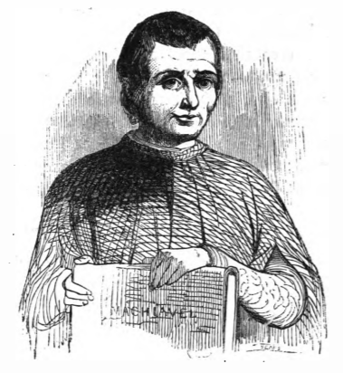 Here we see a portrait of Niccolò Machiavelli, the early sixteenth century Italian humanist who became famous for his book The Prince, in which Machiavelli describes the characteristics that make a successful Renaissance Prince. These characteristics often tended to be rather violent. The image is recalling Machiavelli’s ruthlessness while Gulliver describes gunpowder to the king of Brobdingnag. Machiavelli holds a book with “Machiavel” written on it the French version of ‘Machiavelli’. The term “Machiavel” in English is used to reference someone who shares the same values as Machiavelli, often meaning to value efficiency and personal advantage over morality. The king of Brobdingnag sees Gulliver and his description of European war and politics as Machiavellian. The same image appears in the 1839 Krabbe edition.