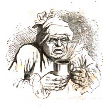 Gulliver explains the various medicines used in England to treat disease. In this image we see a man holding a cup of medicine that is steaming. He looks disgusted as the medicines often smelled and tasted horrible. Gulliver explains that the man vomits because of the foul taste of the medicine which included ingredients such as reptile skins, bones, excrements, insects, herbs, minerals, gums, oils, and juices. The same image appears in the 1843 Krabbe edition.