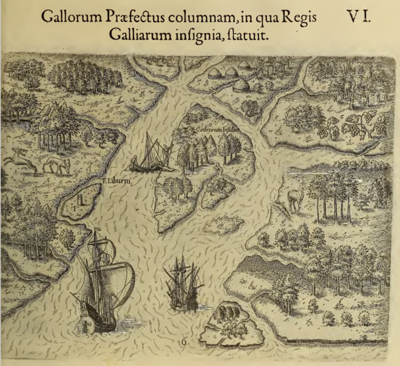Brevis narratio eorum quae in Florida Americae provicia gallis acciderunt, secunda in illam navigatione, duce Renato de Laudoniere classis praefecto. Anno M D LXIIII. Quae est secunda pars Americae. Additae figurae & incolarum eicones ibidem ad vivu expressae, brevis item Declaratio Religionis, rituum, vivendique ratione ipsorum