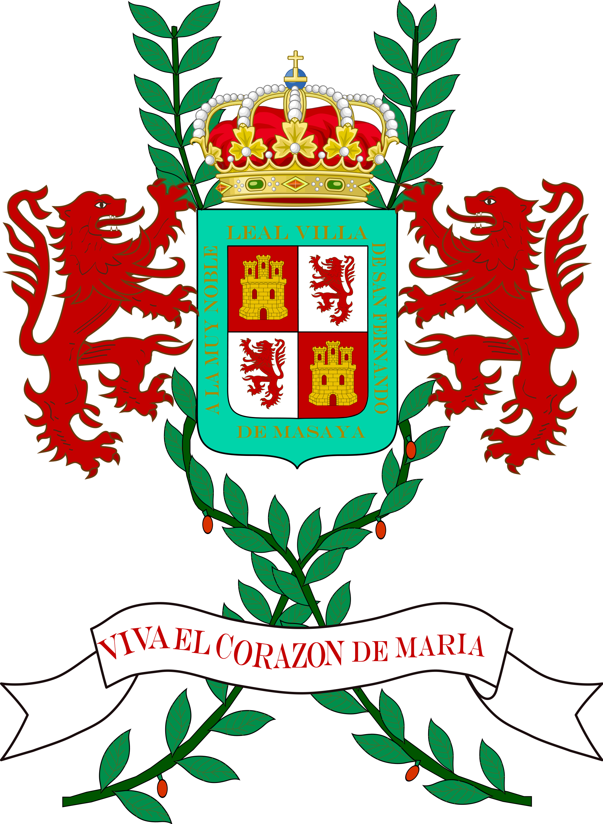 - "A LA MUY NOBLE LEAL VILLA DE SAN FERNANDO DE MASAYA" "VIVA EL CORAZON DE MARIA"