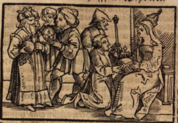 The right side of the engraving depicts Empress Irene of the Eastern Roman Empire sitting on her throne. There is a man kneeling in front of her presenting her with the globus cruciger to demonstrate her authority. The left side of the image depicts the pope crowning Charlemagne as emperor. The pope did not recognize Irene’s rule as she was a woman, which led him to coronate Charlemagne as emperor.