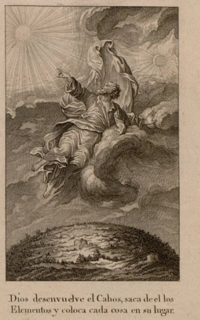 Dios desenvuelve el Cahos, saca de el los Elementos y coloca cada cosa en su lugar