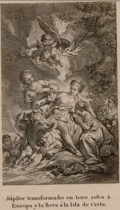 Jupiter transformado en toro roba a Europa y la lleva a la Isla de Creta