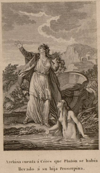 Aretusa cuenta a Ceres que Pluton se habia llevado a su hija Proserpina