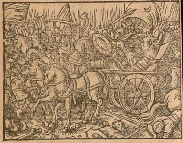 This engraving illustrates the first battle between the Greeks and the Trojans in the Trojan War. Amidst the chaos and fighting happening in the engraving, there are two soldiers depicted as the focal point in the center of the image. The soldier which has his shield and sword in hand, standing in the chariot is the great Achilles. Achilles is depicted fighting a man named Cycnus, who is depicted just to the left of Achilles, almost in the center of the engraving. Achilles continues to throw his spear at Cycnus, however, his spear bounces off Cycnus’ armour every time. Cycnus reveals that he is the son of Neptune and cannot be harmed. Achilles ends up choking Cycnus, but before he dies, Neptune transforms him into a swan.