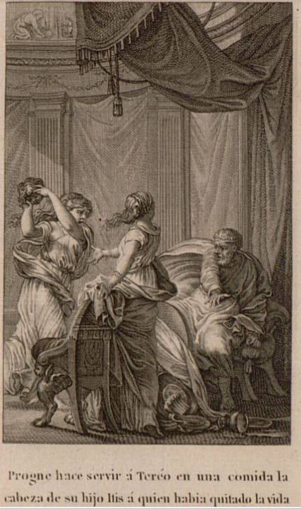 Progne hace servir a Tereo en una comida la cabeza de su hijo Itis a quien habia quitado la vida