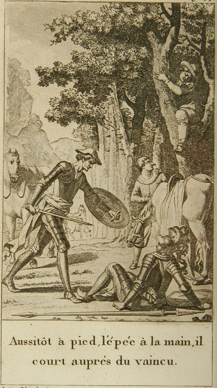 Aussitôt à pied, l'épée á la main, il court auprés du vaincu