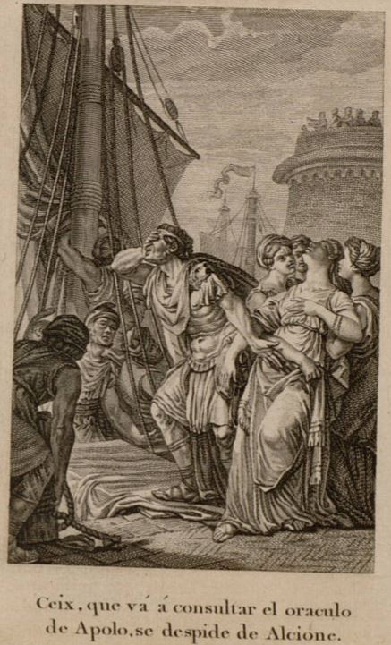 Ceix, que va a consultar el oraculo de Apolo, se despide de Alcione