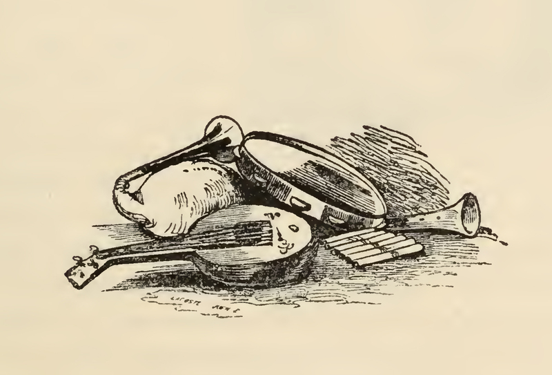 - Five instruments lie on the ground, a galician gatia, a lute, a large tambourine, a pan flute, and a clarinet (from left to right). The image is occasioned by a parade of musicians celebrating Quiteria's wedding.
