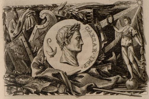 This image appears at the beginning of the fifteenth book. The centre of the image depicts a circular tablet that has a side portrait of Julius Caesar, whose story is told at the end of the fifteenth book. The letters “imp” are written after “Caesar” beside the portrait which stands for “imperator” [emperor]. There is a star in the top right corner of the image which represents the deification of Caesar and his transformation into a constellation.