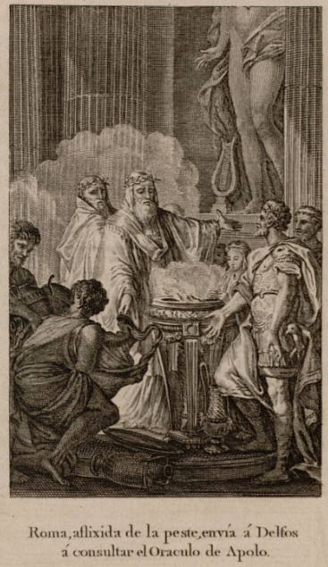 Roma aflixida de la peste, envia a Delfos a consultar el Oraculo de Apolo