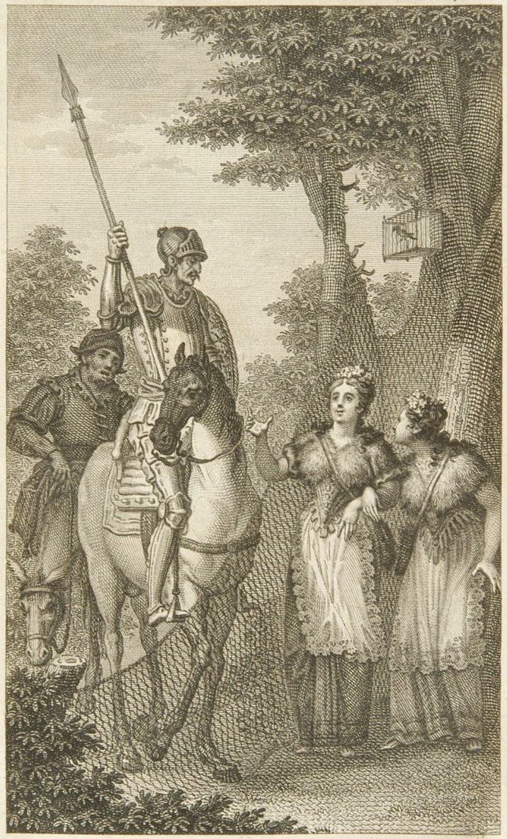 [Don Quixote and Sancho Panza meet two shepherdesses]