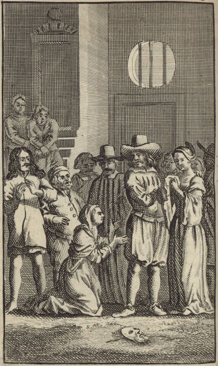 - Dorotea kneels before Don Fernando and begs him to let Lucinda go with Cardenio. Luscinda has lost her mask and is no longer disguised. Sancho, the priest, and the barber look on. Unsigned. Part 1, ch. 36.