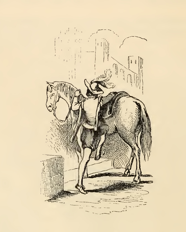 [One of the Duchess' Pages Mounts a Horse]