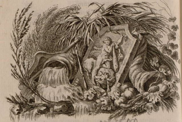 This image appears at the beginning of the ninth book. It depicts a fable within the ninth book which is the story of Hercules and Achelous. The demi-god Hercules and the river god Achelous fight each other for the right to marry a woman named Deianira. The fight between the two is depicted on a slab of stone in this image with Hercules on top of Achelous.