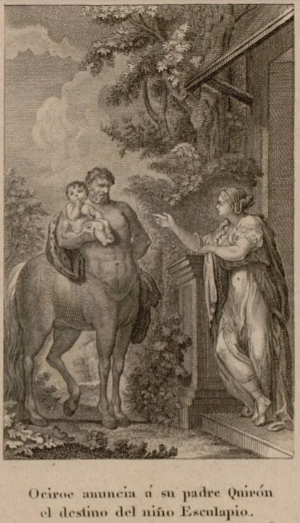 Ociroe anuncia a su padre Quiron el destino del nino Esculapio