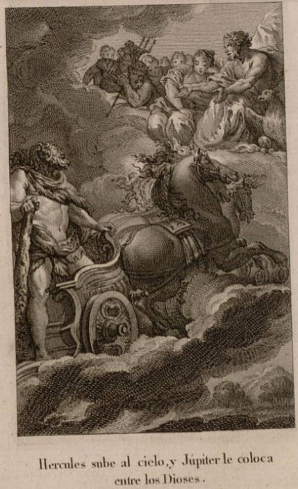 Hercules sube al cielo, y Jupiter le coloca entre los Dioses