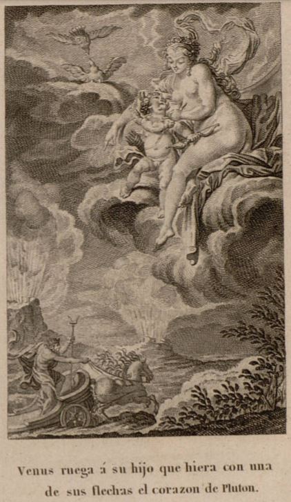 Venus ruega a su hijo que hiera con una de sus flechas el corazon de Pluton