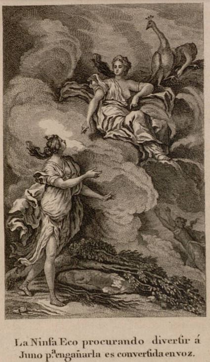 La Ninfa Eco procurando divertir a Juno p.aenganarla es convertida en voz