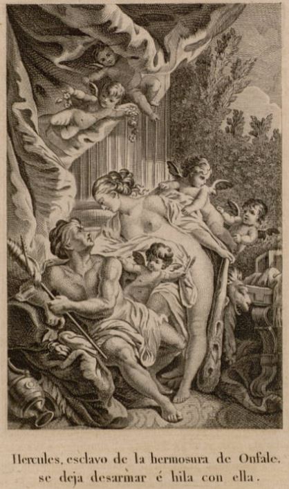 Hercules, esclavo de la hermosura de Onfale, se deja desarmar e hila con ella