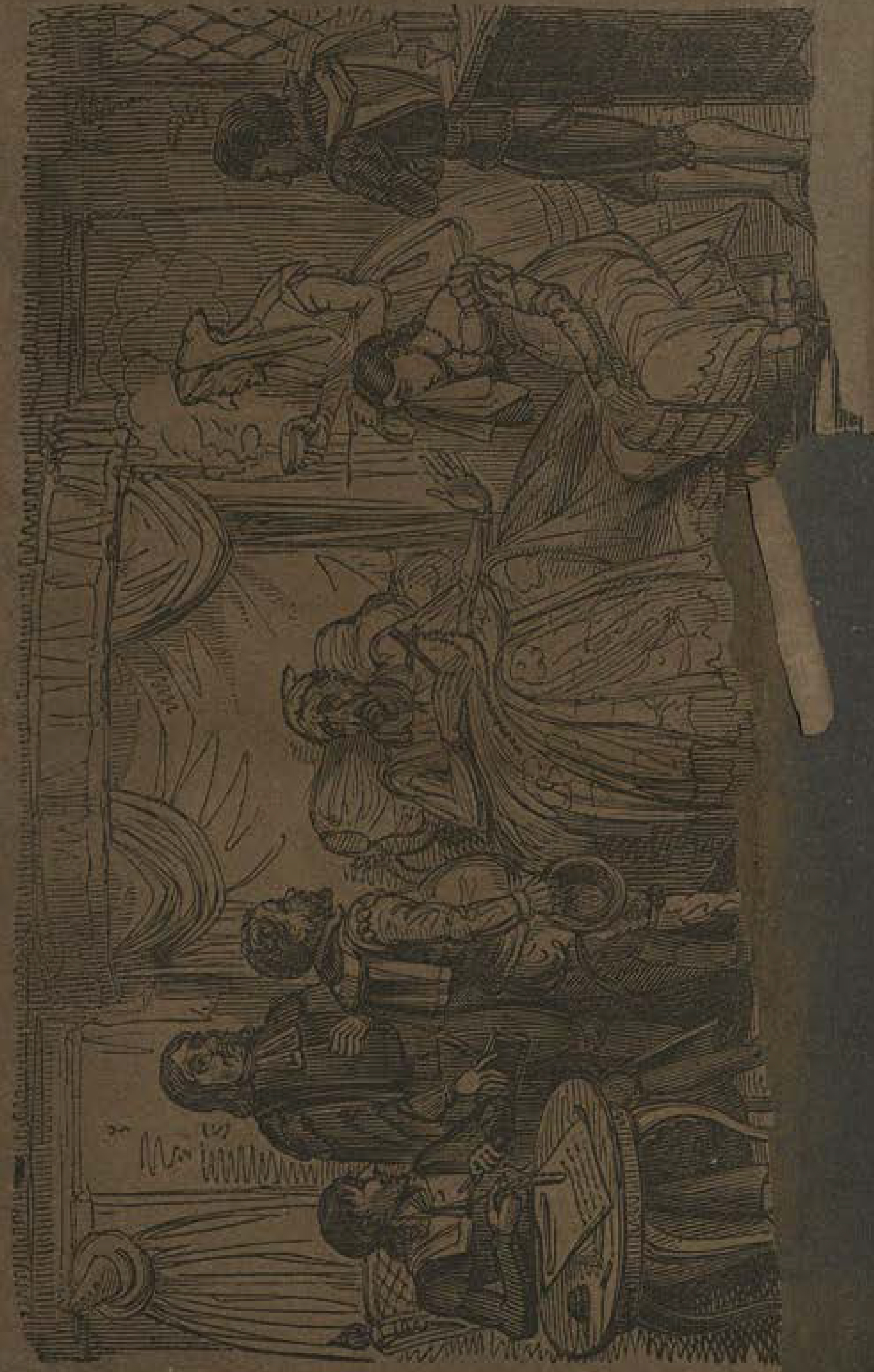 Don Quixote lies on his deathbed adorned in a loose white shirt and cap, his right hand to his chest holds a cross, his left hand raised in the air abiding. Sancho Panza (left) looks on sorrowfully at the bedside with his hat in his hand, the priest stands to the left of Sancho holding his hand to his chest. On the far left a notary sits at a table writing Quixote's will.On the right, Quixote's housekeeper holds a steaming bowl, his niece wies her eyes with a handkerchief and a man stands with his arms crossed by a dresser.