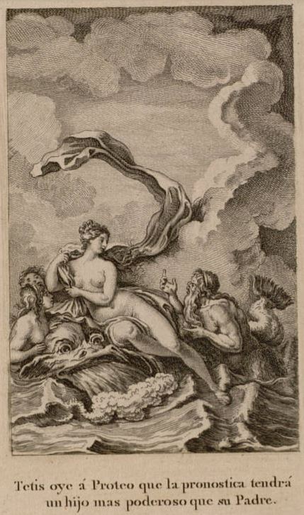 Tetis oye a Proteo que la pronostica tendra un hijo mas poderoso que su Padre