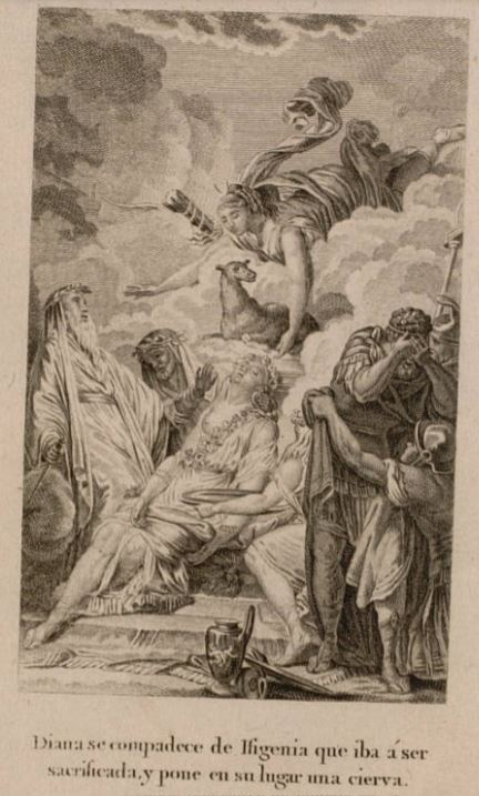 Diana se compadece de Ifigenia que iba a ser sacrificada, y pone en su lugar una cierva
