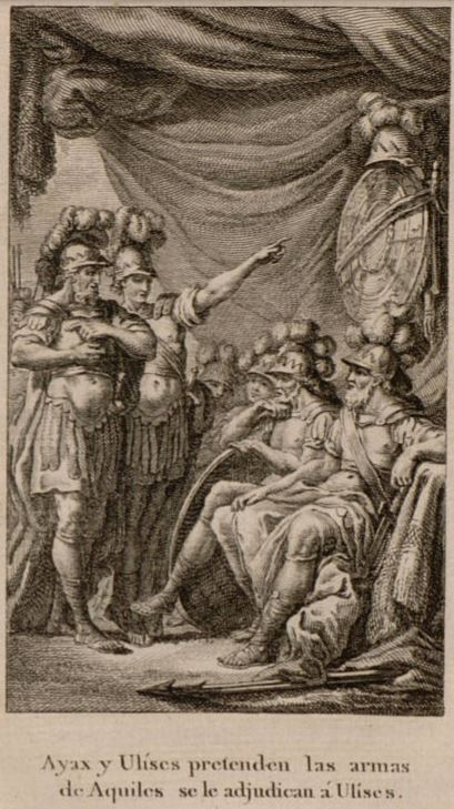 Ayax y Ulises pretenden las armas de Aquiles se le adjudican a Ulises