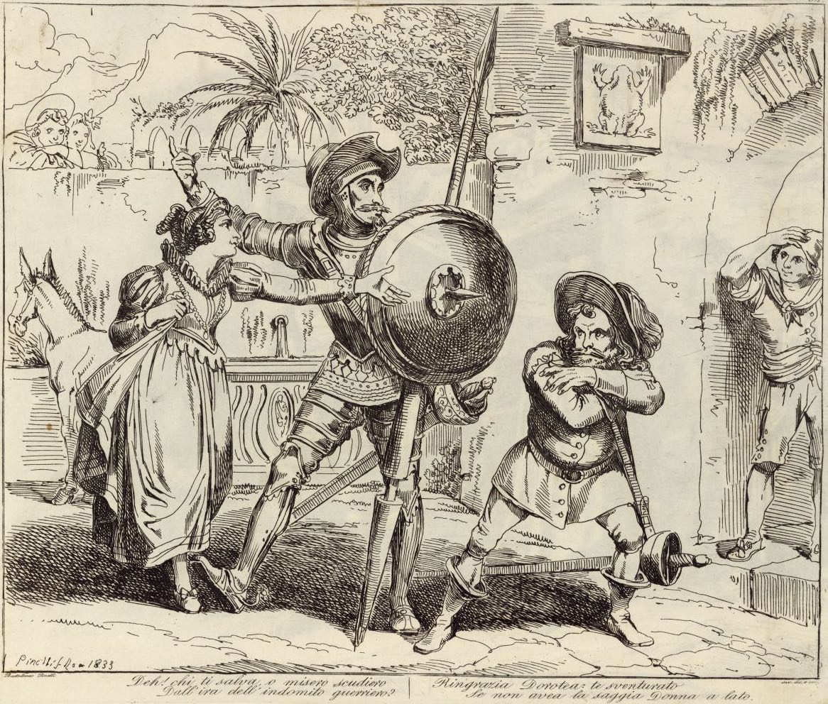 Deh! chi ti salva o misero scudiero / Dall'ira dell'indomito guerriero? / Ringrazia Dorotea: te sventurato / Se non avea la saggia Donna a lato.