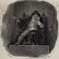- The vignette is a portrait of Sancho Panza as governor of Barataria Island. He wears a cloak and a cap, and holds a staff. Signed by A J.-J.-M. Devéria (illustrator) and E. J. Ruhierre (engraver). Part 2, ch. 45.