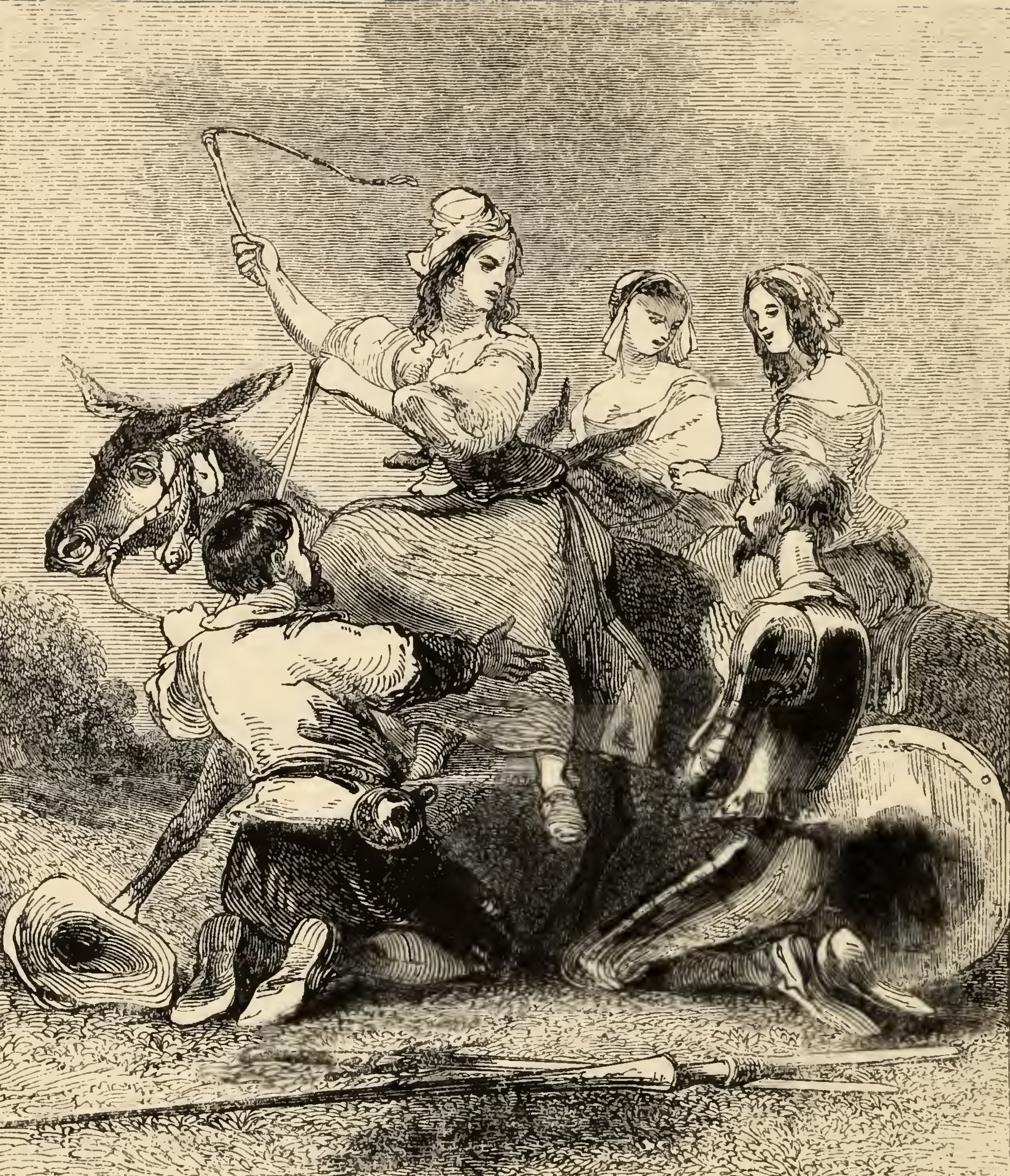 [Sancho Panza Grabs the Halter of a Country Girl's Donkey Trying to Convince Don Quixote that she is Dulcinea Del Toboso]