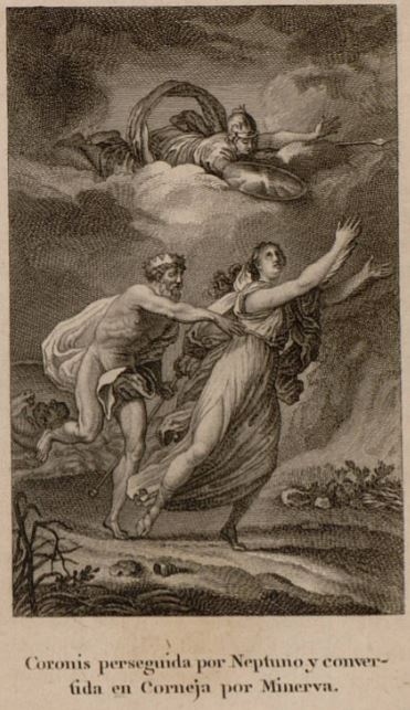 Coronis perseguida por Neptuno y convertida en Corneja por Minerva