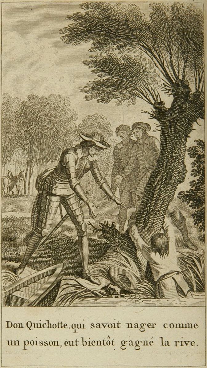 Don Quichotte, qui savoit nager comme un poisson, eut bientôt gagné la rive