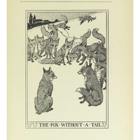 - On an open plain, a skulk of foxes are forming a semi-circle around a single fox who doesn’t have a tail. This fox without a tail appears to be looking back at the skulk.