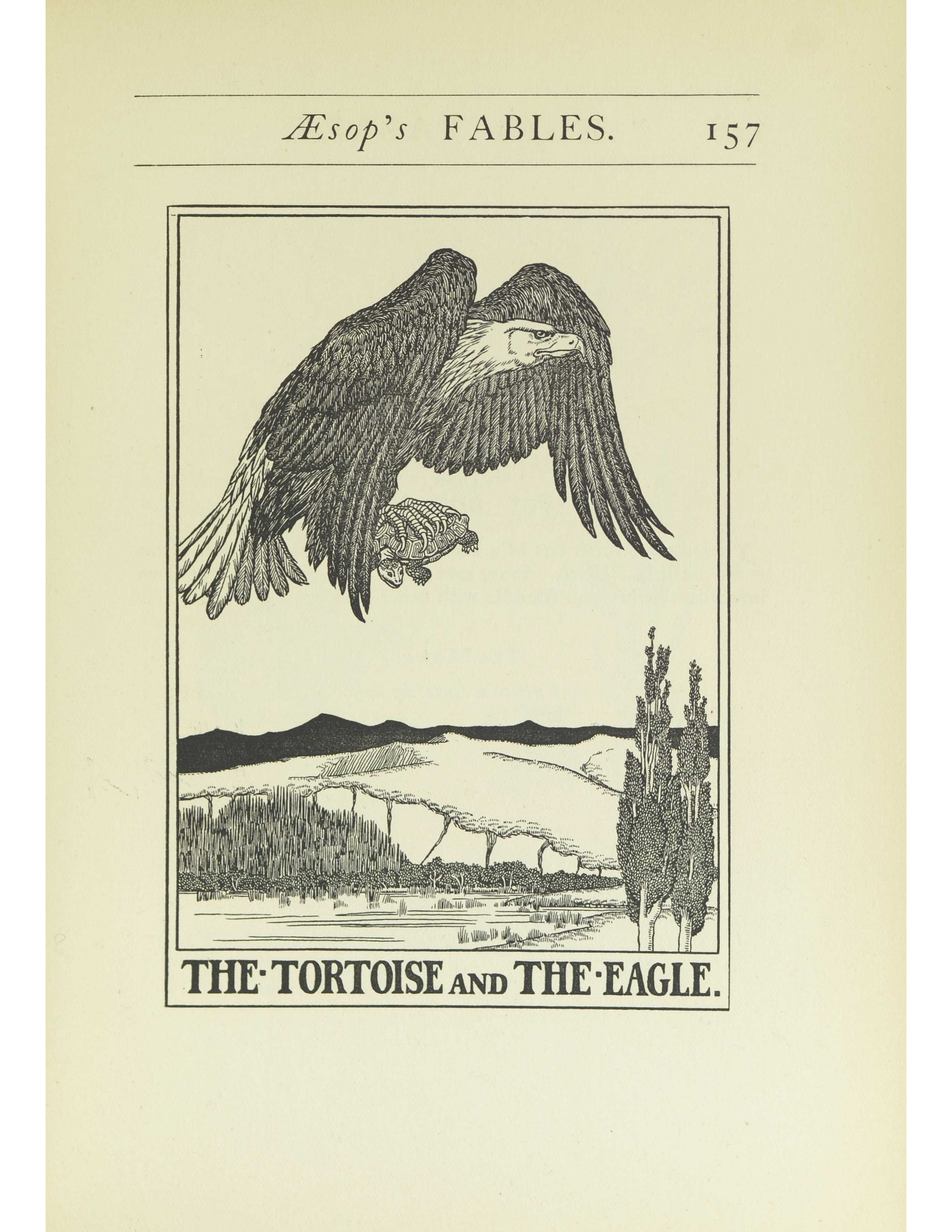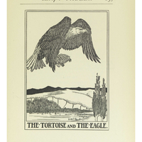 - The top of this picture is an eagle flying with a tortoise gripped in his talons. He is flying high above the water, trees, hillside, and the mountains.