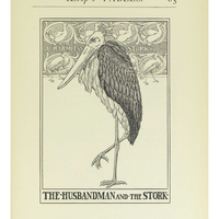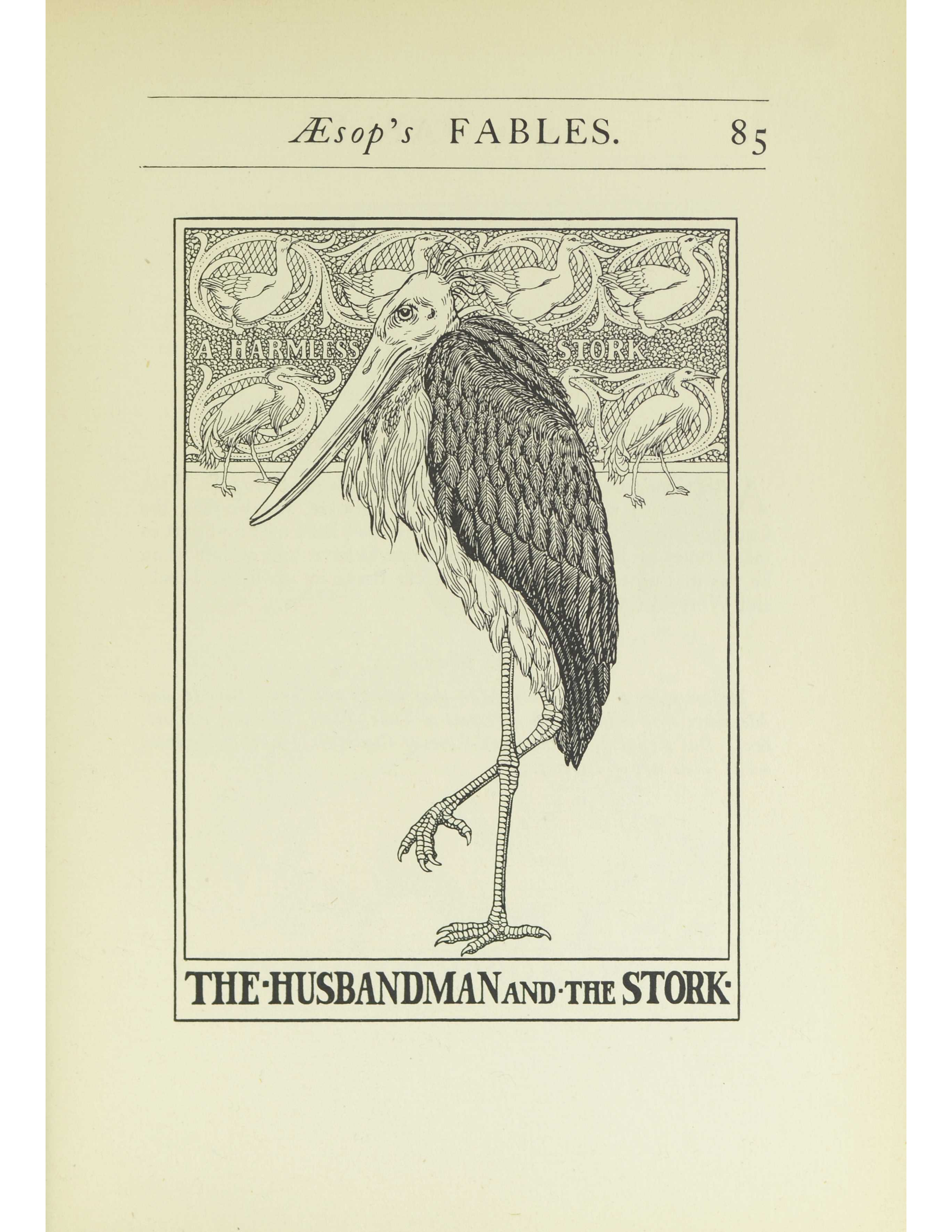 - The stork is standing on one leg in front of a mosaic mural with repetitive images of storks and says, “A Harmless Storkâ€. A line of storks are walking in a line next to the mural behind the stork standing on one leg.