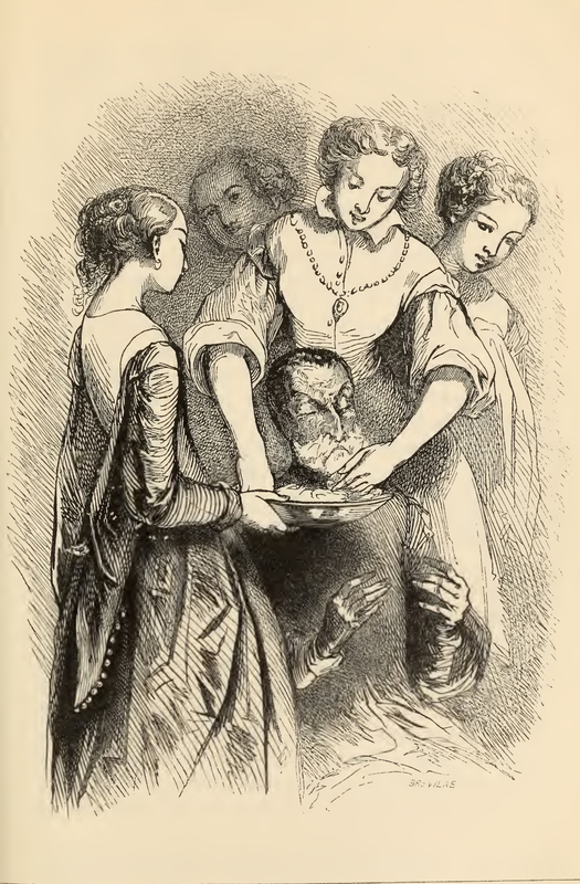 Four damsels stand around Don Quixote, one to the left with a basin of silver, a second behind him with her sleeves rolled up to her elbows and a necklace adorned on her neck went at Quixote with two hands on his beard, a third still, stood on the right with fine clean towels in her arms, and the fourth damsel merely peaked over the second's shoulder. The damsel behind Don Quixote claps her hands under Quixote's beard with a genteel air and assurance, raising great flakes of white lather over the the face beneath the nose. As Quixote gets washed, he shuts his eyes tight so as not to have them infiltrated by the soapy suds.